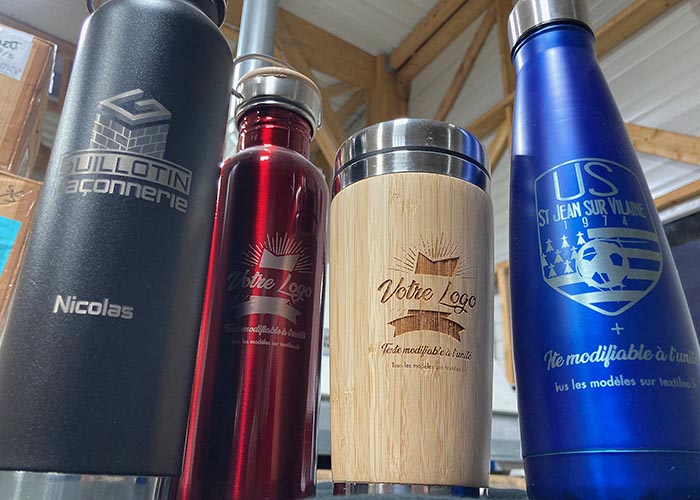 Pour une impression haut de gamme, la gravure au laser est une option à considérer. Elle peut être appliquée sur divers matériaux comme le métal, le verre ou le bois. La couleur finale du marquage dépend de la couleur de sous-couche du produit. Cette technique permet également d’ajouter un prénom différent sur chaque produit pour une personnalisation maximale.